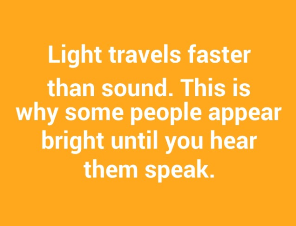 Light travels faster than sound. This is why some people appear bright until you hear them speak. http://www.quoteambition.com/wp-content/uploads/2017/07/sarcastic-quotes.png